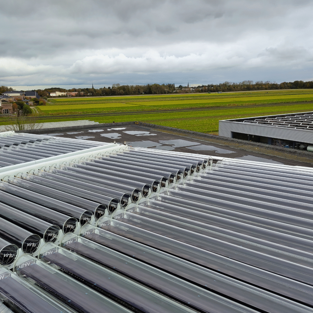 Voor dit project was de grootste uitdaging om de beperkte beschikbare oppervlakte optimaal te benutten. Dit hebben wij opgelost door 40 Virtu zonthermische buizen in een HD-Frame (High Density) te installeren.