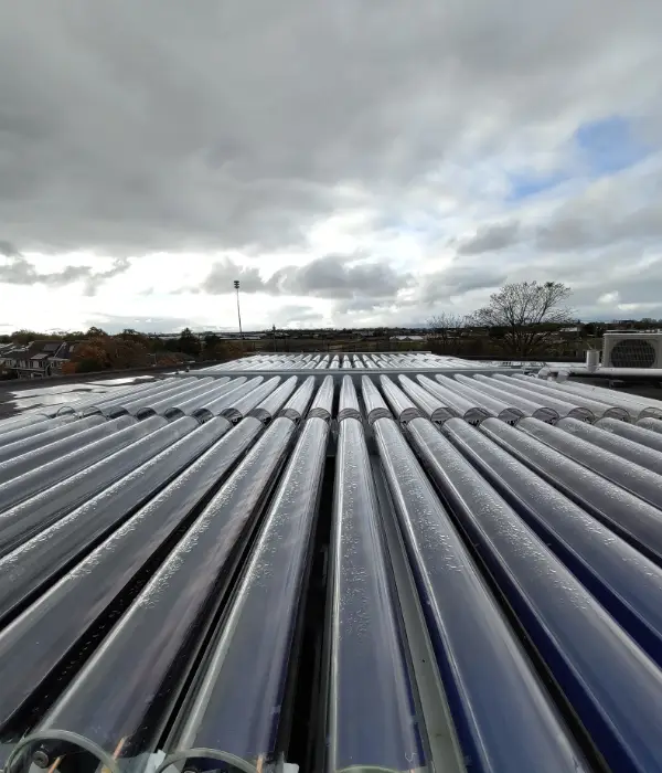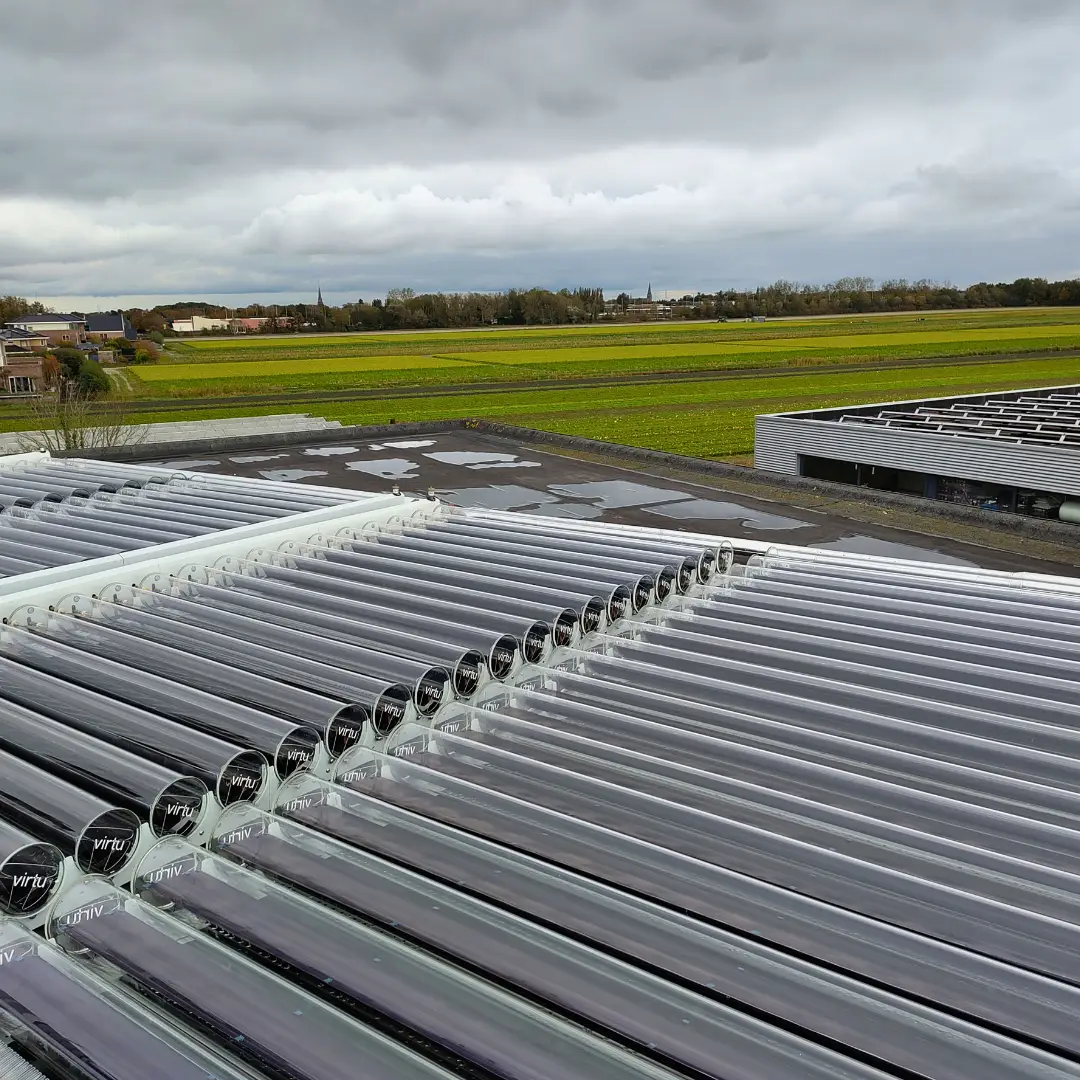 Het systeem bestaat uit 80 zonthermische buizen van VenFeld, die zonnewarmte efficiënt opvangen. Twee Ecoforest-warmtepompen verzorgen zowel verwarming als koeling van het gebouw. De grondbron fungeert als warmteopslag, zodat overtollige warmte kan worden gebufferd en later benut.